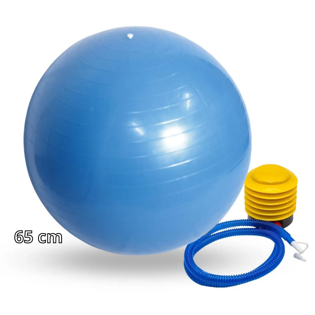 Bola de Pilates Suíça Gym Ball com Bomba de Ar – 65cm Azul